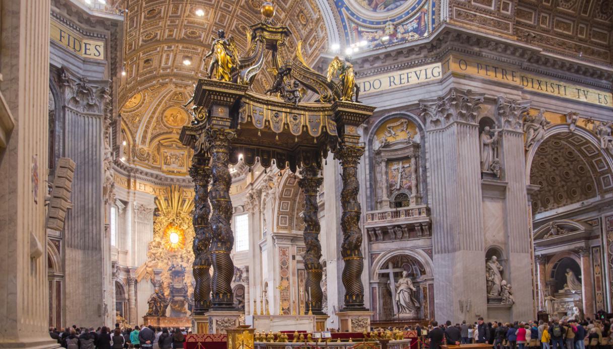 Il quarto e ultimo punto di forza della Basilica di San Pietro è, senza dubbio, il baldacchino di San Pietro. Esso è semplicemente un antico ciborio barocco situato all’interno dell’edificio e venne realizzato dall’architetto Bernini intorno al 1630. Esso è uno dei monumenti più spettacolari che si possano ammirare all’interno della Basilica di San Pietro e, come tutti gli arredi sacri, è entrato a far parte dei tesori della chiesa. Si tratta di un’opera caratterizzata dalla fusione tra architettura e scultura, un’allegorica immagine di un oggetto che si inserisce nello spazio in maniera scenografica ed innovativa.