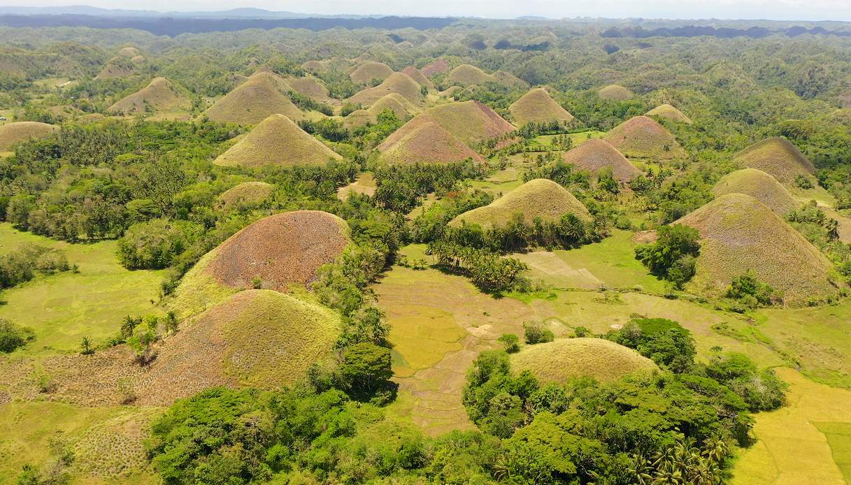 Sapevate che nel mondo esistono le Colline di cioccolato? Meraviglie della natura che creano paesaggi che sembrano usciti da un quadro e che si estendono per circa 50 chilometri quadrati. Si trovano sull’Isola di Bohol, nelle Filippine, un affascinante angolo del nostro mondo dove svettano più di 1.200 montagnole, totalmente sommerse di vegetazione, che raggiungono un’altezza di 30/40 metri. Ma non solo. Queste collinette, infatti, sono in grado di assumere nuove sfumature con lo scorrere delle stagioni, fino a diventare color cioccolato durante l’estate.