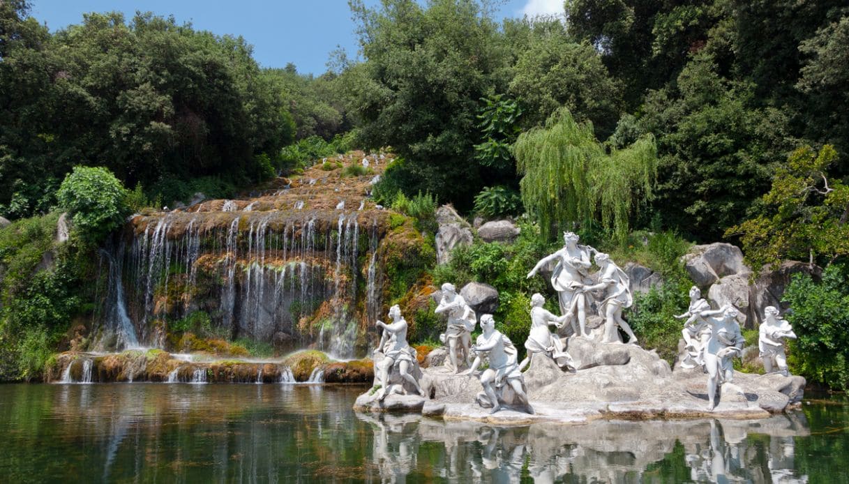 Alle spalle del palazzo si apre il Parco Reale, un giardino monumentale che si estende per oltre 120 ettari, anche questo frutto dell’ingegno dall’architetto Luigi Vanvitelli. Dalla facciata posteriore della Reggia, il parco si sviluppa seguendo un lungo asse prospettico, impreziosito da fontane scenografiche, cascate, vasche e scorci paesaggistici perfettamente studiati. Grazie all’effetto “a cannocchiale”, l’occhio del visitatore è guidato lungo un percorso che sembra non avere fine, con l’acqua come protagonista assoluta, il cui flusso è alimentato dall’Acquedotto Carolino, un’opera ingegneristica all’avanguardia per l’epoca.