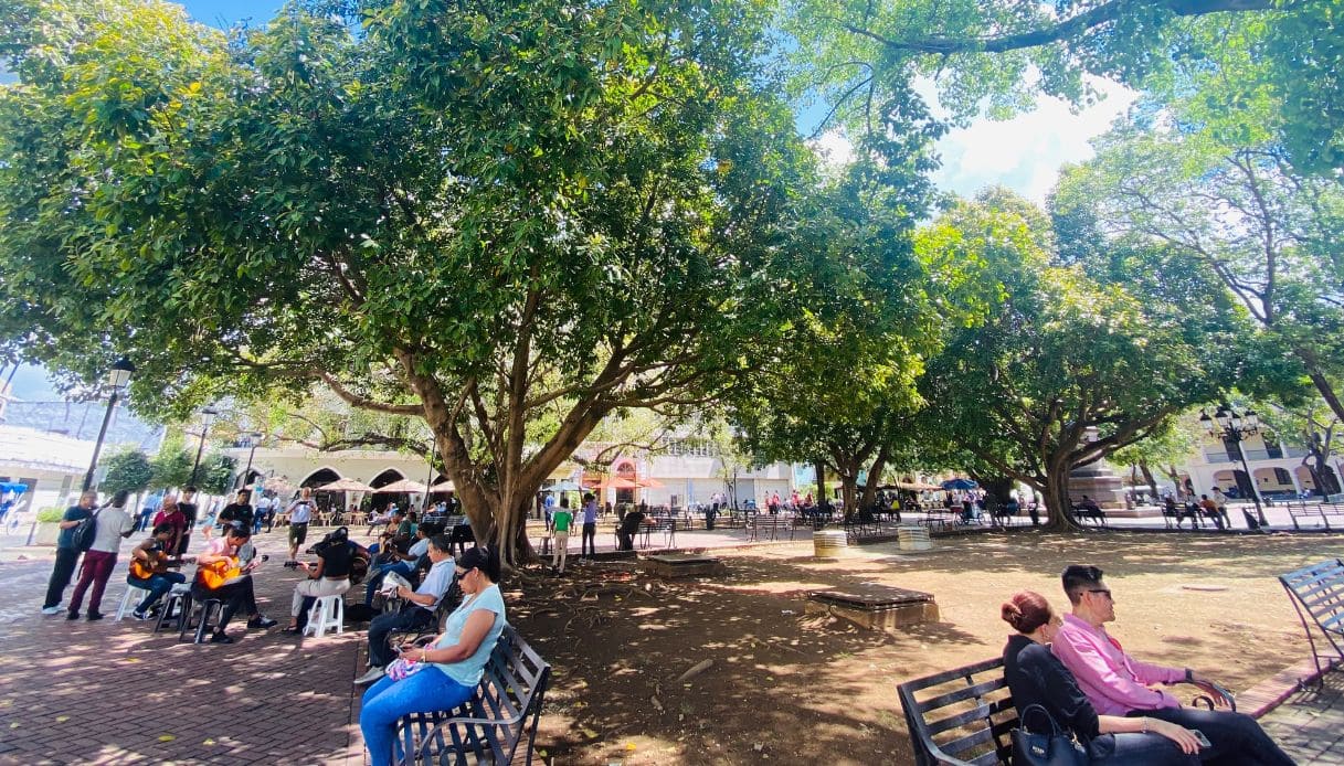 La visita alla città antica non può che partire dal Parque Colón, una piazza ariosa, verde, costantemente animata da musica caraibica suonata dal vivo, dehors e artisti di strada. La piazza è dominata dalla statua di Cristoforo Colombo, opera dello scultore francese Ernest Gilbert, eretta nel 1887, nello stesso periodo in cui la Francia donò la Statua della Libertà agli Stati Uniti. ll dito della statua di Colombo punta n alto, verso la meta e, tra i locali, per indicare una cosa altamente improbabile si dice che succederà quando il dito di Colombo punterà verso il basso.