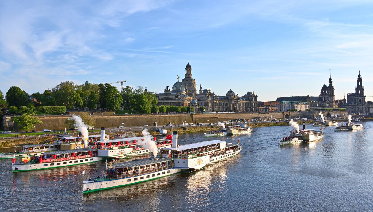 Il 1° maggio, Dresda si risveglia con un suono inconfondibile, quello dei fischi a vapore che si diffondono lungo le rive dell’Elba: è il segnale che la stagione è iniziata. Tutti i battelli scendono in acqua insieme e danno vita a una parata collettiva che affonda le radici nella tradizione. Le persone si affacciano lungo il fiume, la città si anima, e per qualche ora l’Elba torna ad essere il vero centro della vita urbana.