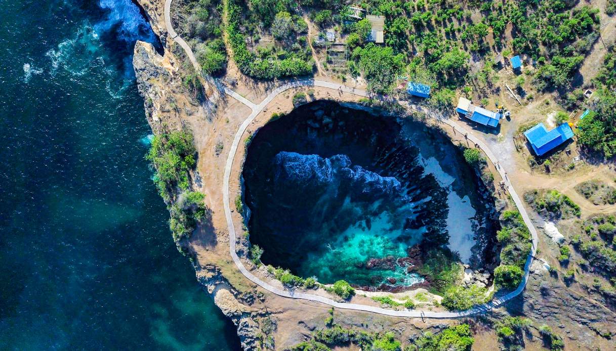 Pasih Uug Beach, nota anche come Broken Beach o “spiaggia rotta”, deve il suo nome alla sua particolare conformazione geologica. Nel corso dei millenni, l’erosione causata dalle onde del mare e dai venti ha scavato un’enorme apertura a forma di arco nella roccia calcarea che caratterizza quest’area dell’isola di Nusa Penida.
