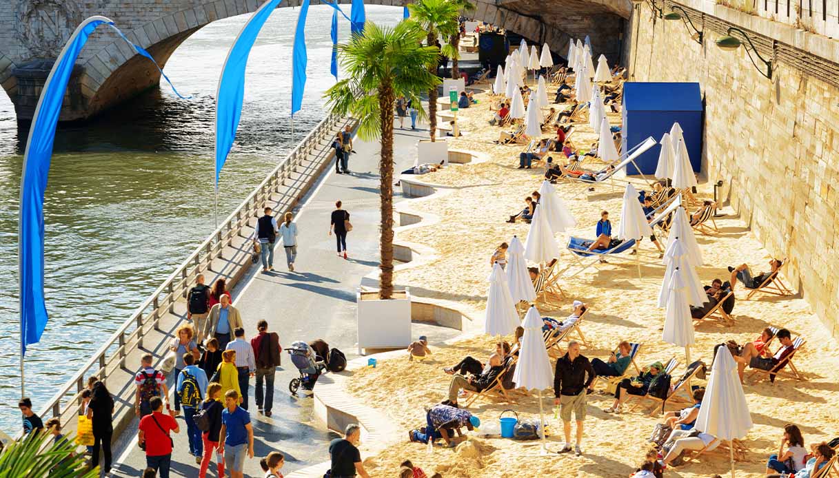 Paris Plages sulla Senna: la spiaggia estiva con vista sui monumenti iconici di Parigi