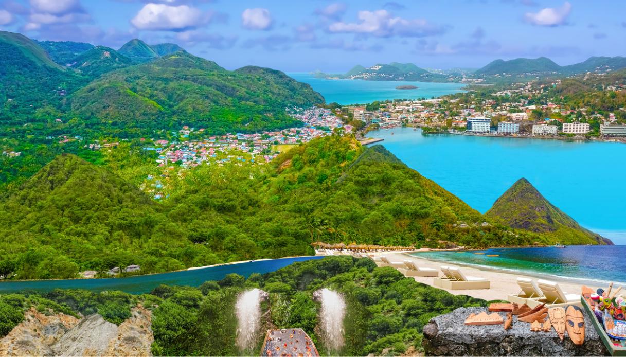 A nord di Saint Vincent e a sud della Martinica, Santa Lucia è frammento di terra nel Mar dei Caraibi orientale che sembra essere sfuggito alla mano di un architetto particolarmente audace. Appare, infatti, come una sinfonia di verdi verticali, una scheggia di smeraldo incastonata tra l’Oceano Atlantico e il bacino caraibico. Non a caso, l’isola vanta una morfologia accidentata che la distingue nettamente dai vicini fazzoletti di terra che possiedono profili più dolci: origine vulcanica, rilievi ripidi, vallate umide e una linea costiera frastagliata danno vita a un territorio che alterna sinuosità tropicale e severità primordiale.