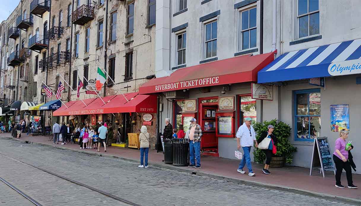 Come dice il nome, River Street è un viale storico acciottolato lungo 3 km che costeggia il fiume Savannah ed è uno dei waterfront più iconici degli Stati Uniti d’America. SI tratta di passeggiata lungofiume dove c’è movimento tutto il giorno e persino la sera, per via dei negozi, i locali e i ristoranti frequentatissimi dai turisti. Ci sono ancora gli storici magazzini di cotone costruiti proprio a ridosso del fiume, ben conservati e oggi convertiti in boutique, gallerie d’arte, pub e hotel. Da qui si può salire a bordo della Belle.