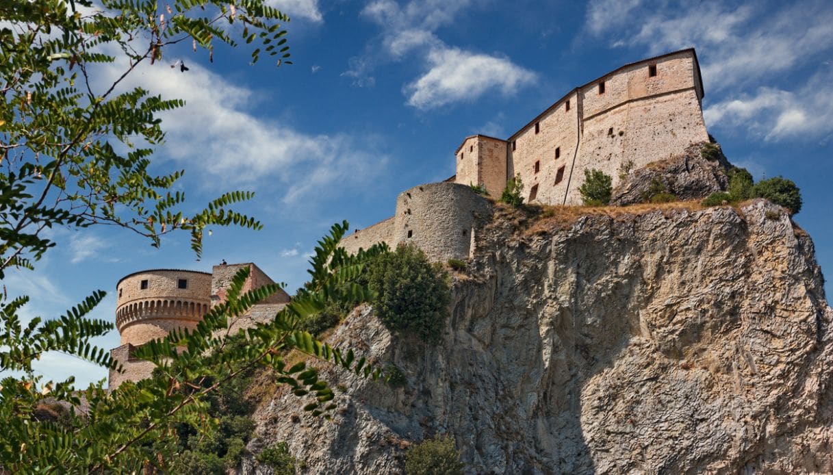 A dominare il panorama spicca poi il Forte di San Leo, che si erge maestoso su un masso calcareo che pare sfidare il cielo. Un tempo inespugnabile roccaforte, toglie il fiato già solo per la vista che regala: dal Montefeltro fino al mare, lo sguardo si perde nell’infinito. Dante Alighieri vi passò, San Francesco vi soggiornò, e il misterioso conte di Cagliostro vi trovò l’ultima dimora, imprigionato a vita.