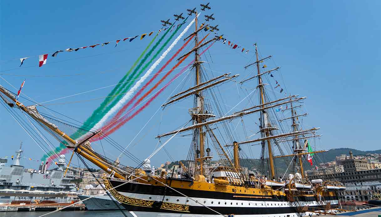 - Ore 9:15: ormeggio dell’Amerigo Vespucci nel Porto Antico di Genova,
