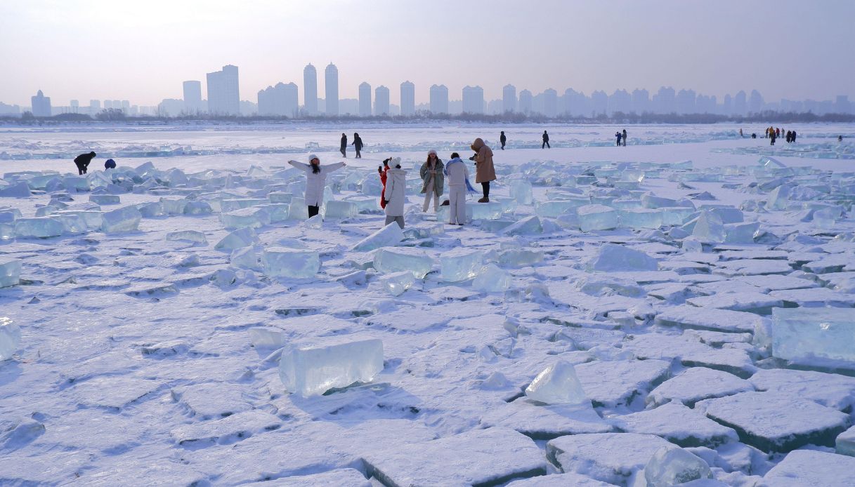 Non è propriamente un mare, ma la distesa ghiacciata che si perde a vista d’occhio regala davvero la sensazione di trovarsi davanti all’acqua salata. In realtà si tratta del fiume Songhua che, con l’arrivo dell’inverno, si è ghiacciato completamente creando un’ambientazione da fiaba.