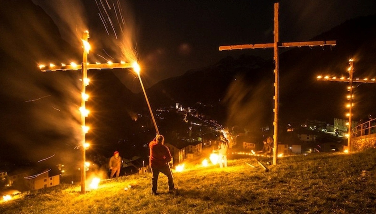 A Gromo, in Val Seriana (provincia di Bergamo), la Settimana Santa culmina con la suggestiva processione del Venerdì Santo, un rito antico che illumina le vie storiche del borgo. Tutto è organizzato nei dettagli e concorre a ricreare un’atmosfera molto particolare: nei giorni precedenti, la comunità prepara i “bocconi“, stracci imbevuti di benzina sistemati in secchielli attaccati alle croci, che poi vengono accesi: un simbolo forte del fuoco della Passione. Inoltre, sui cancelli vengono incollati gusci di lumaca riempiti con olio o grasso e uno stoppino, trasformandoli in piccole fiammelle che rischiarano le vie del borgo.
