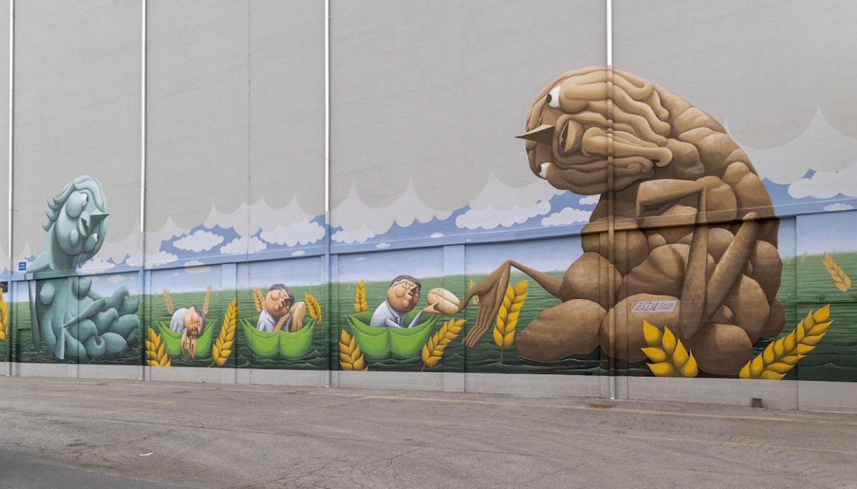 Per visitarlo bisogna dirigersi presso l’azienda Conase, che si occupa di sementi ed è associata a Legacoop: all’esterno una grande parete della struttura è diventata una vera e propria opera d’arte, di dimensioni davvero imponenti. L’estensione, infatti, è di 30 metri, mentre in altezza raggiunge i cinque metri, tanto che è visibile anche dalla strada.