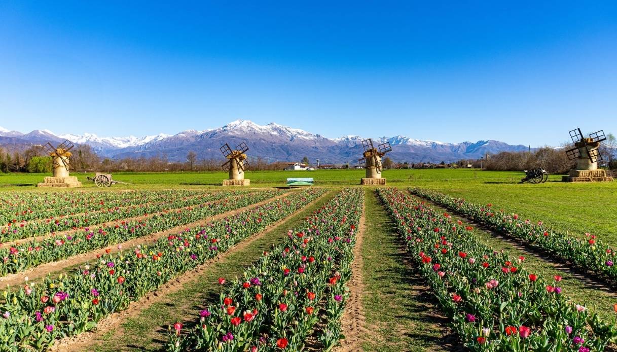 L’iniziativa è stata sviluppata all’interno dei terreni dell’azienda agricola La Borgheisa che per il 2026 ha scelto di piantare circa 250.000 bulbi di tulipano. Tra la fine di marzo e aprile è attesa una fioritura colorata che trasformerà il campo in un tappeto colorato ispirato ai parchi del Nord Europa. Siamo però in Piemonte, a due passi da Torino e con le Alpi sullo sfondo.