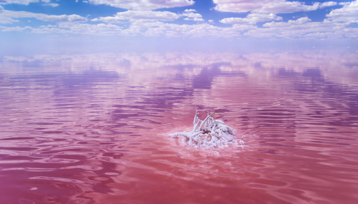 La peculiarità di queste acque, infatti, è data proprio dalle tonalità rosa che assumono in alcuni punti, con sfumature cangianti che virano verso il rosso vermiglio e il magenta. Un incantesimo, a prima vista, che però è spiegato dalla presenza dell’alga Dunaliella che vive sui fondali e prolifera proprio grazie all’alta concentrazione salina.