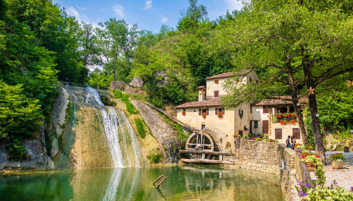Quasi nascosto tra alberi, muschio e rumore costante d’acqua, il Molinetto della Croda, nel territorio di Refrontolo in provincia di Treviso, regala una scena che resta impressa a lungo: è una casa-mulino addossata alla roccia, costruita ai piedi di una cascata che scende rapida e che alimenta da secoli la sua anima meccanica. Pare quasi di essere entrati direttamente dentro a un quadro, e invece si è davanti a uno dei simboli più amati del Veneto rurale.