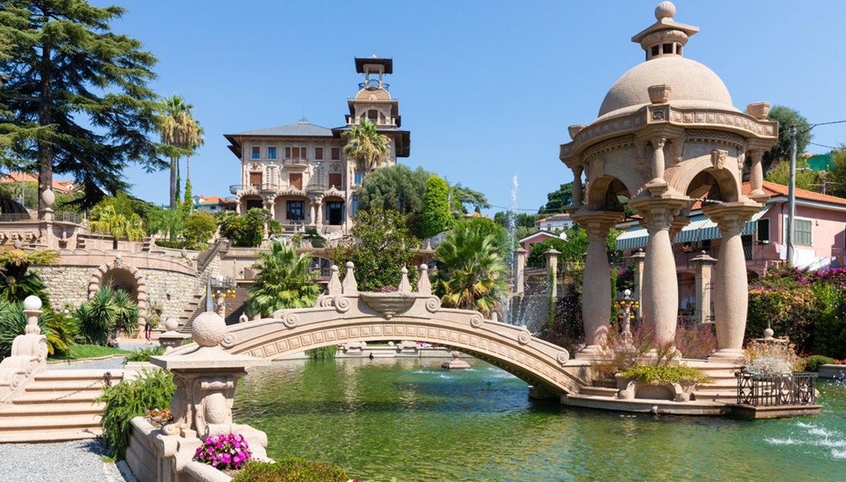 Ma anche la parte esterna della villa è un piccolo mondo di rara bellezza e mistero. È rinato dopo un accurato restauro il giardino della villa, proprio come l’aveva pensato lo stesso Adrien Wettach. I profumi floreali e le piante più belle della Riviera di Ponente abbelliscono colonne a fuso, archi e decorazioni uniche e fontane, oltra al laghetto col suo ponticello di ispirazione orientale.
