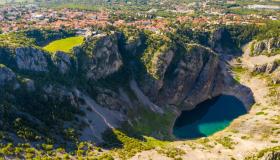 A Imotski la terra si apre in due abissi spettacolari, Lago Blu e Lago Rosso, specchi d’acqua nati dal calcare e custoditi da una cittadina dalmata piena di carattere