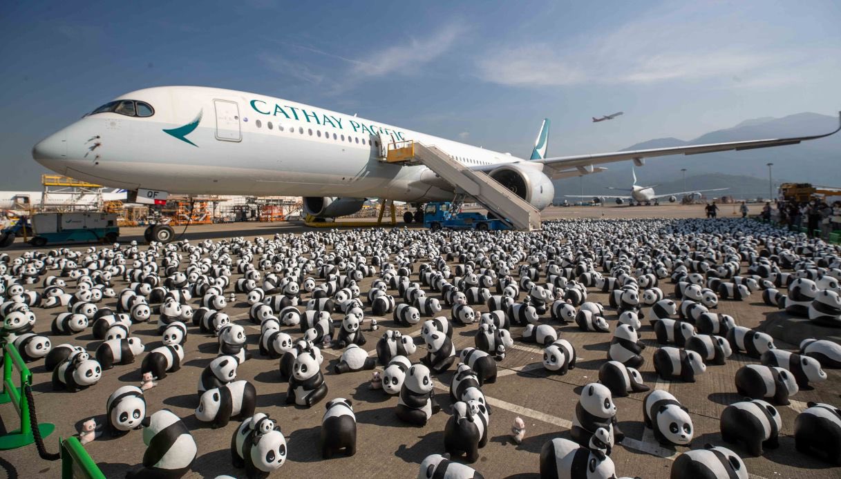 La cerimonia d’apertura dell’evento Panda Go! Fest Hk si è tenuta oggi all’aeroporto di Hong Kong, dove i turisti sono stati accolti in modo particolarmente speciale con i 2.500 esemplari sparsi per la pista. Il panda non è un animale scelto a caso. Molti di voi magari ricorderanno la notizia che ha fatto sciogliere i cuori di tutto il mondo relativa alla nascita dei due cuccioli di panda nati nel parco a tema locale Ocean Park. Questi due cuccioli, oltre a essere particolarmente teneri, ricoprono anche un ruolo centrale dal punto di vista simbolico e politico.